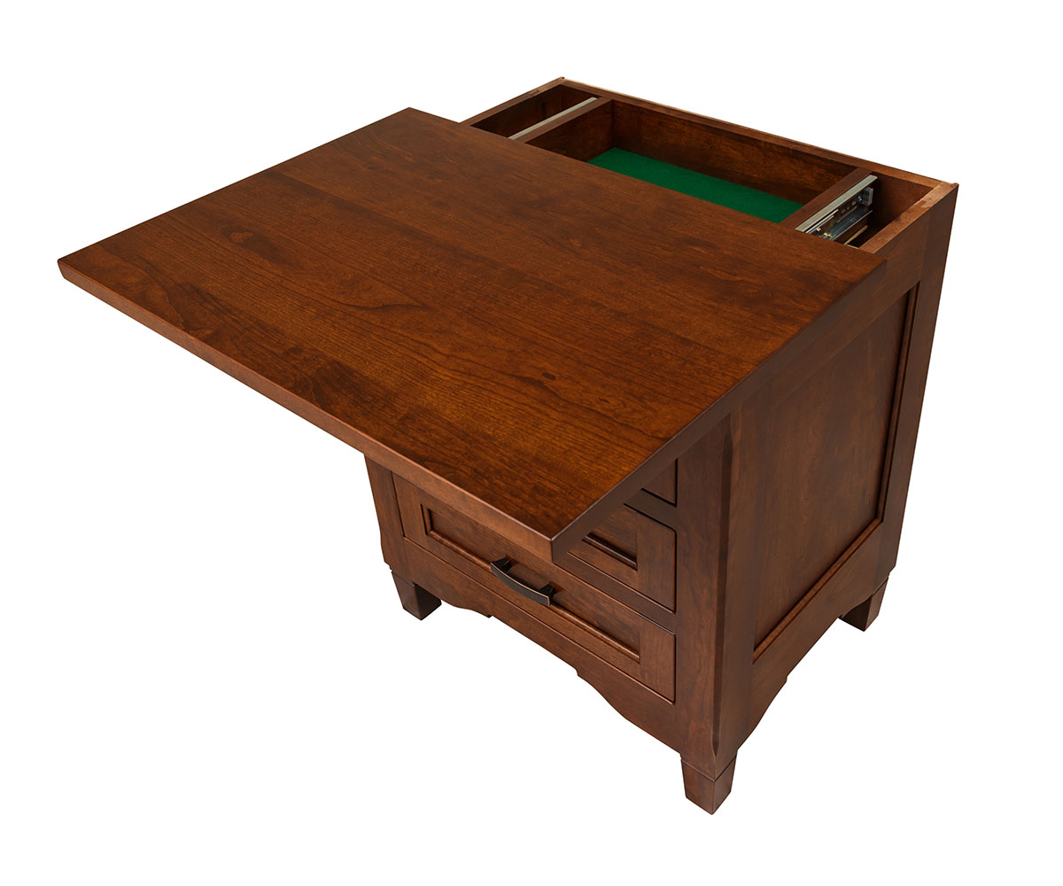 • Hidden compartment under the top (shown)